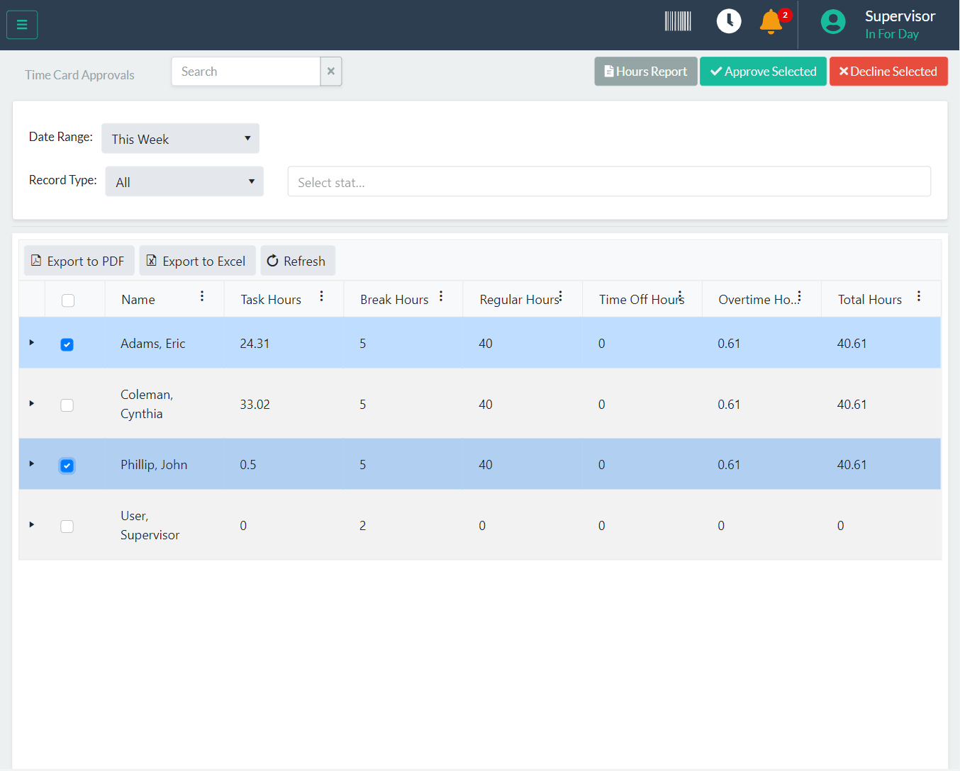 APPROVE TIME CARDS QUICKLY